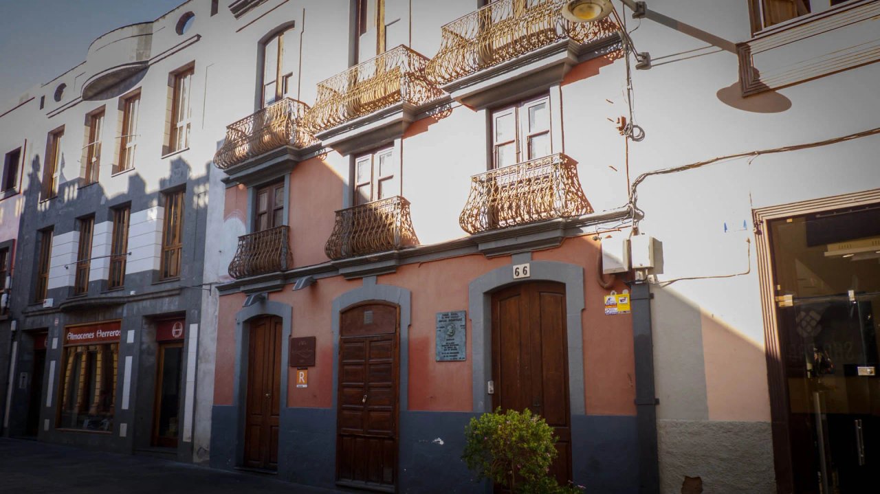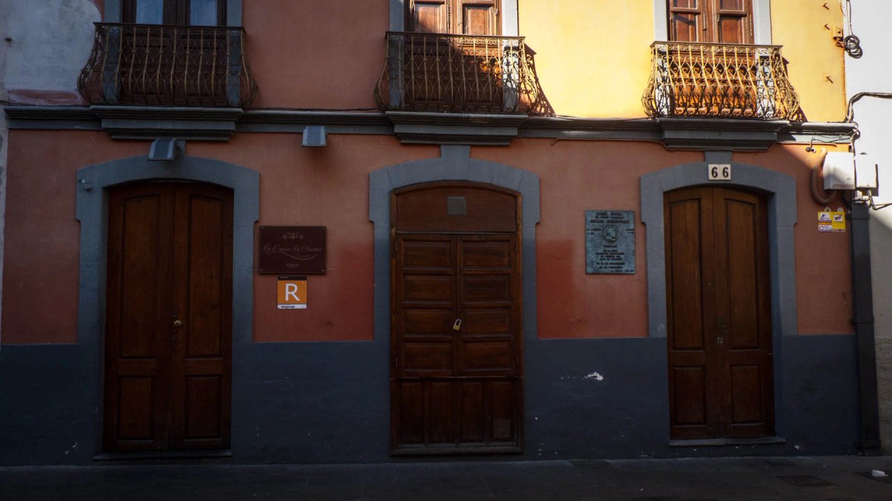 Los ecos de la Navidad de 1905 y la bienvenida al año 1906 todavía flotaban en el ambiente de las calles del centro histórico de La Laguna. Y entre esas calles, en el número 66 de Herradores, veía por primera vez la luz del mundo el universal Óscar Domínguez. Un artista de renombre mundial que participó en el movimiento surrealista junto a otros importantes artistas como André Bretón, Salvador Dalí o Pablo Picasso. Observaciones: En la actualidad es un bar, por lo que se puede entrar y degustar gastronomía.