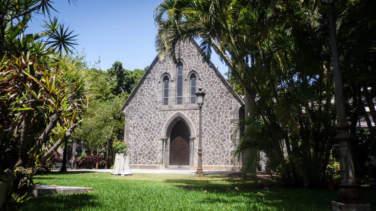 Esta iglesia se encuentra en la Plaza de los Patos, haciendo esquina con la calle Viera Clavijo. Fue construida en 1897, con planta de cruz latina, y está rodeada de un espacio ajardinado. Antes era una iglesia anglicana, lo cual se nota mucho en su arquitectura. En el interior se emplea mucha madera, tanto en el revestimiento de los techos como en la zocalada de las paredes, y tiene bonitas vidrieras emplomadas cubriendo los ventanales ojivales. El culto está dedicado a la Adoración del Santísimo Sacramento. Puedes visitarse en horario de culto.