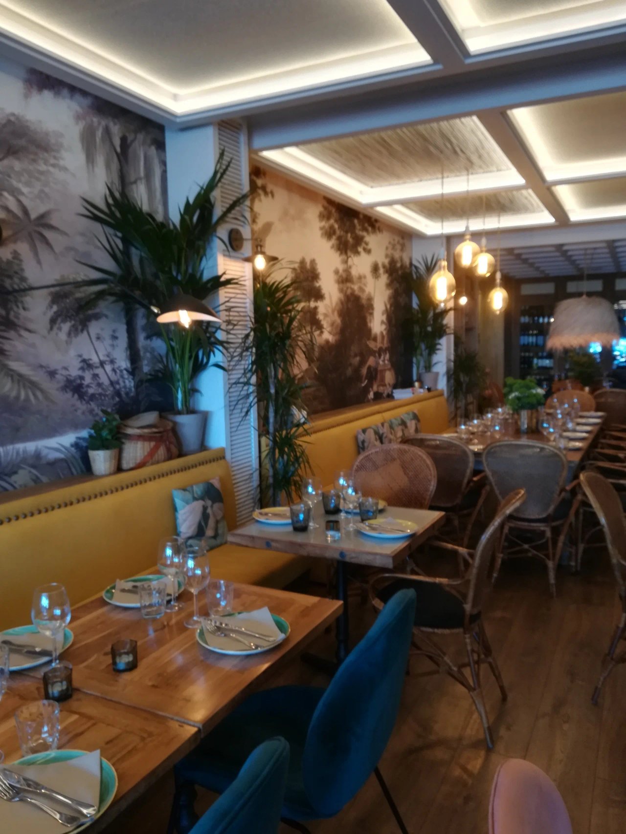 Madre del Amor Hermoso se ha convertido en uno de esos lugares imprescindibles del Paseo de Las Canteras que los canarios recomiendan sin dudar. Ubicado en primera línea de playa, este restaurante combina un interiorismo moderno y cuidado al detalle con vistas espectaculares a una de las playas urbanas más hermosas del mundo. Su decoración, con papeles pintados elegantes y un ambiente acogedor, crea la atmósfera perfecta tanto en el comedor interior como en su codiciada terraza frente al mar.